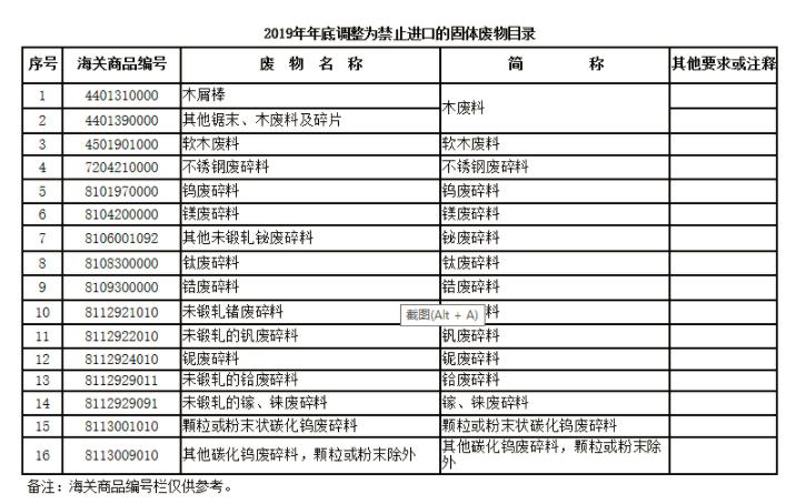 2.2019年年底调整为禁止进口的固体废物目录